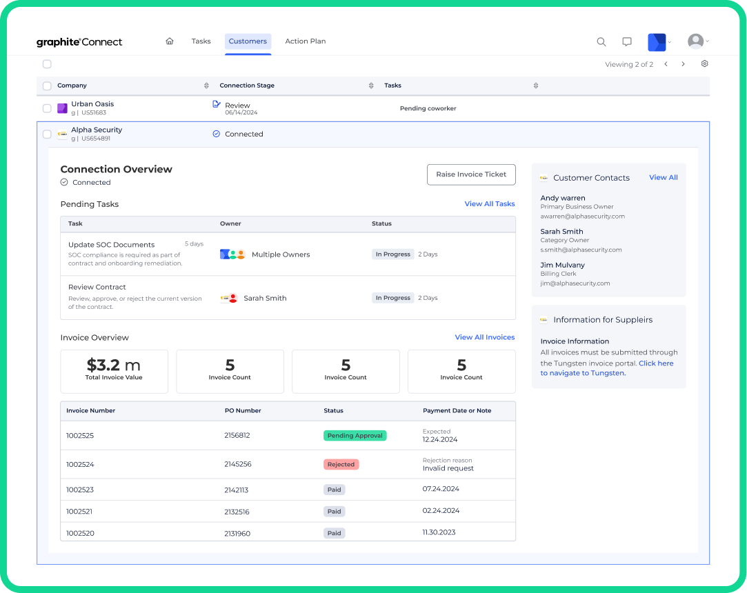 - Increased transaction accuracy and fewer payment delays with Graphite’s leading supplier data validation.