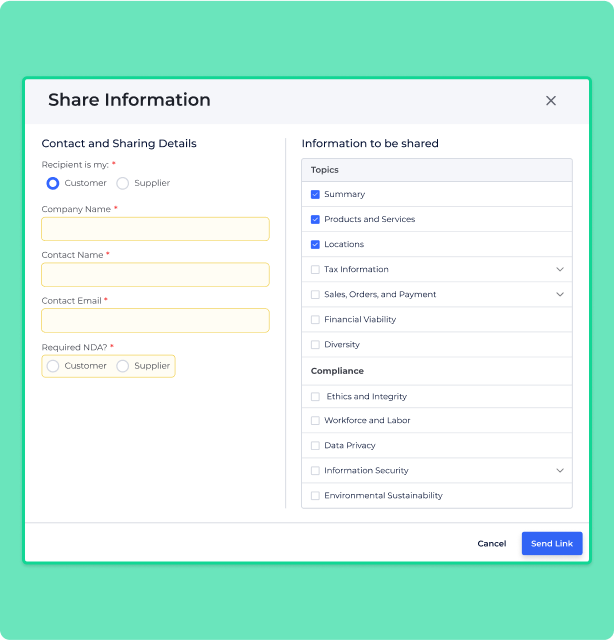 With the built-in ClickShare feature in Graphite’s vendor information management software, shared suppliers can onboard even faster. When a supplier or vendor exists in the Graphite system already, data can easily be shared with another buyer to streamline onboarding. Suppliers rave about no double- or triple-entry and business moves faster.