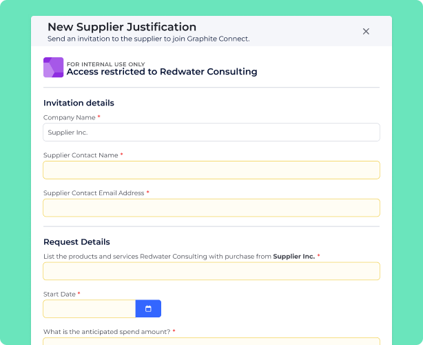 Onboard quickly with customizable New Supplier Justification templates, then let Graphite’s vendor information management software continually clean and update the supplier profile through automation.