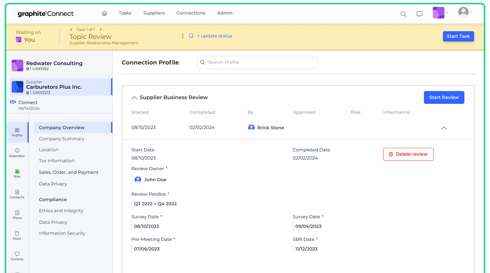Graphite’s platform is highly configurable to your process and requirements. Dynamic routing of task assignments to specific users or groups keeps supplier management flowing across large organizations of thousands of employees.